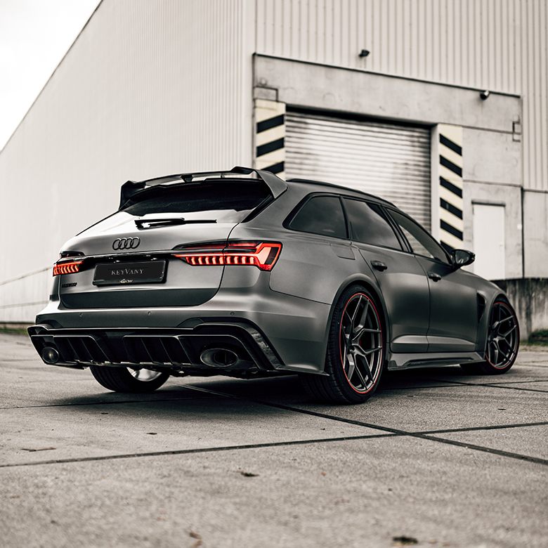 The exterior design of the Audi RS6 consists of 11 parts, all made of carbon fibre, which you can order separately or as a package. Combine it with one of the two models of 22-inch original rims and the Audi RS6 turns into a real predator.