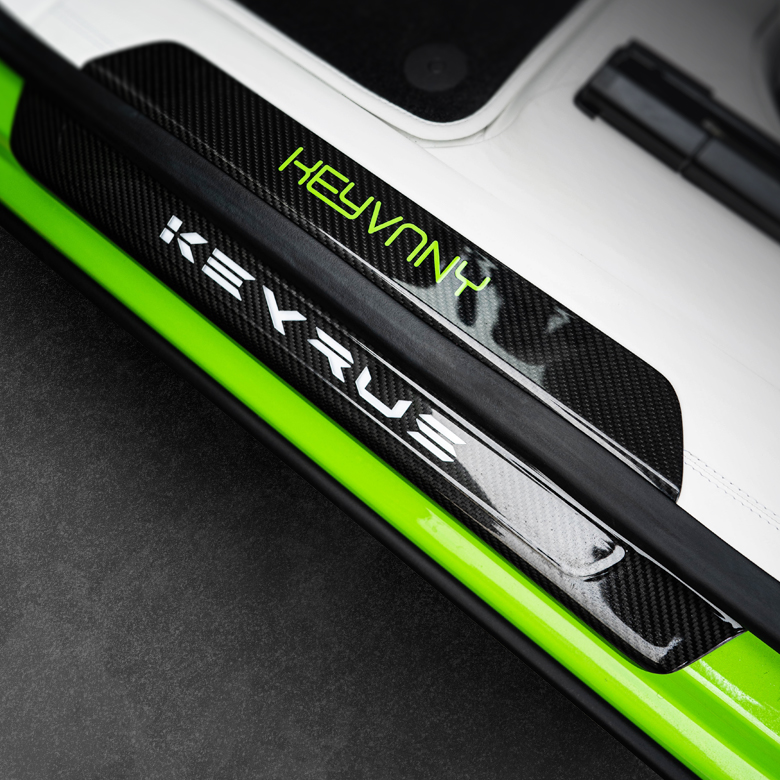 Check out the new interior of the Keyrus, made of top quality leather, selected together with the Customer. It features carbon fibre panels, steering wheel covers, and front seat covers, perfectly matching the car’s exterior, as well as stylish aluminium pedals and door sill guards. Want more? How about a starlight sky?