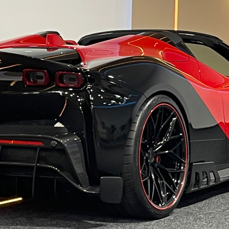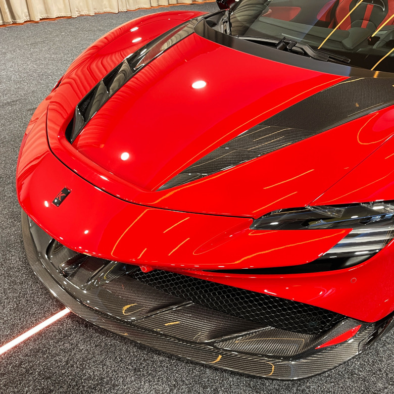 Discover the new face of the beautiful SF90 1051HP with modifications from Keyvany. This highly luxurious sport car already comes with a distinct character, but with the Keyvany redesign it is even more potent and aggressive. A new carbon fibre exterior, stylish rims and a highly luxurious leather interior with carbon fibre add-ons will make you see this unique car in a completely new light. Presumably in the light of your own garage.